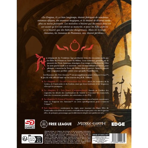 Ce supplément pour le jeu de rôles L’Anneau Unique décrit les trois royaumes elfiques qui perdurent encore. Vous y trouverez des informations détaillées sur les principaux royaumes des Eldar, un ensemble d’éléments narratifs, et douze sites d’intérêt que les Héros pourront explorer.