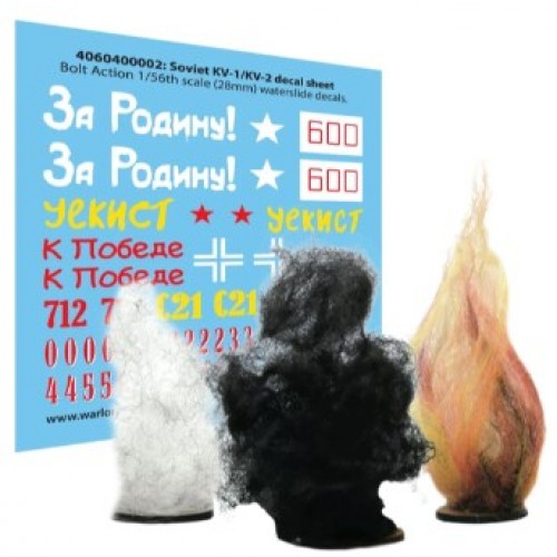 La boîte contient un char lourd KV-1/2 en plastique, une grappe d'infanterie soviétique (6 hommes), une feuille de décalcomanies et des marqueurs de dommages pour véhicule.
