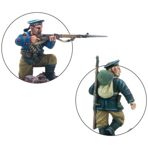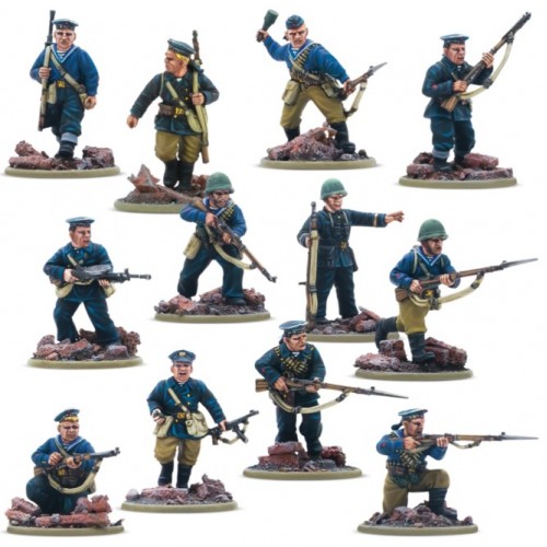 Un certain nombre d'unités d'infanterie navale spécialisées furent formées : quarante brigades et cinq régiments. Ils gagnèrent une réputation de ténacité et d'audace tant dans les combats défensifs que dans les opérations de débarquement côtier sur les mers Baltique et Noire. Avec leur expérience militaire antérieure et un fort esprit de corps, ils faisaient partie des meilleures troupes disponibles pour les commandants soviétiques. Cela est également vrai sur la table de jeu de Bolt Action, avec les unités de la Brigade Navale faisant partie des règles spéciales de l'armée Marteau & Sickle, apportant la règle toujours utile des Combattants Résistants. Ces vétérans sont bien équipés d'une pléthore de mitraillettes, parfaites pour déverser une grêle écrasante de feu à courte portée.