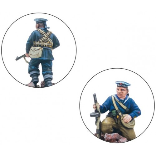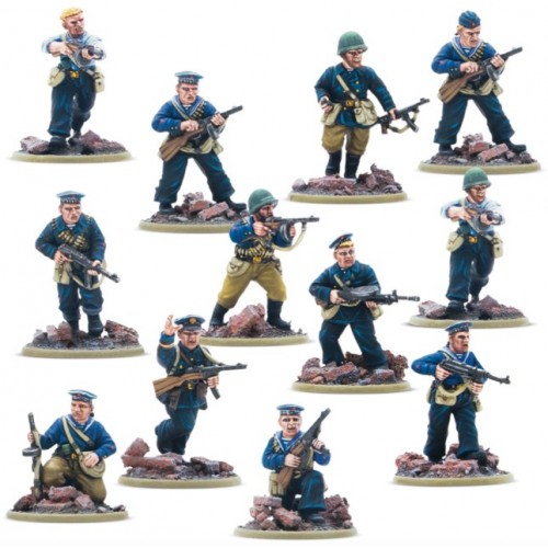 Un certain nombre d'unités d'infanterie navale spécialisées furent formées : quarante brigades et cinq régiments. Ils gagnèrent une réputation de ténacité et d'audace tant dans les combats défensifs que dans les opérations de débarquement côtier sur les mers Baltique et Noire. Avec leur expérience militaire antérieure et un fort esprit de corps, ils faisaient partie des meilleures troupes disponibles pour les commandants soviétiques. Cela est également vrai sur la table de jeu de Bolt Action, avec les unités de la Brigade Navale faisant partie des règles spéciales de l'armée Marteau & Sickle, apportant la règle toujours utile des Combattants Résistants. Ces vétérans sont bien équipés d'une pléthore de mitraillettes, parfaites pour déverser une grêle écrasante de feu à courte portée.