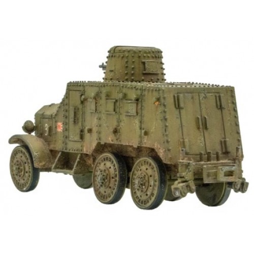 La boîte contient une voiture blindée Type 91 So-Mo en résine et métal dans sa configuration routière, une feuille de décalcomanies et des marqueurs de dommages pour le véhicule.