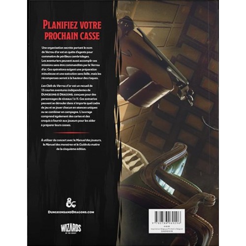 Les aventures sont conçues pour des joueurs de niveau 1 à 11 et peuvent se jouer indépendamment, ou se succéder pour former une campagne palpitante. D'une façon ou d'une autre, Les Clefs du Verrou d'or embarque votre groupe dans un périple plein d'adrénaline que vous n'êtes pas près d'oublier.