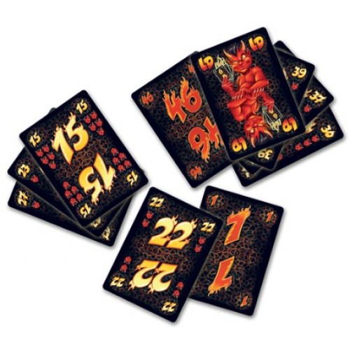 Les cartes, numérotées de 1 à 54, sont affublées de zéro à cinq diablotins, ce qui rappelle fortement le système utilisé dans 6 qui prend. Si la répartition des cartes est différente, rien ne vous empêche d'essayer la règle de Little Devils avec les cartes de votre 6 qui prend avant de décider de son acquisition. Ceci dit, le jeu est vraiment peu onéreux, et la boîte mérite à elle seule qu'on ouvre son porte-monnaie.