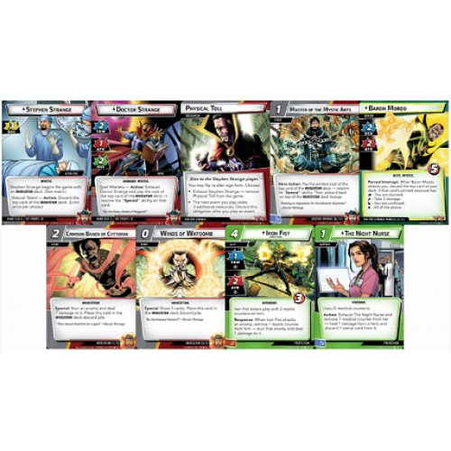 Lorsque le célèbre chirurgien Stephen Strange a cherché à réparer ses mains brisées par des moyens magiques, il a trouvé une nouvelle vocation dans la vie. Utilisant des forces mystiques qui dépassent notre compréhension mortelle, le Docteur Strange protège maintenant notre dimension en tant que Sorcier Suprême ! Ce deck de cartes nécessite le jeu de base Marvel Champions pour être joué.
