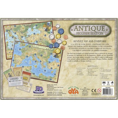 ANTIQUE est un jeu de stratégie sans hasard où chaque joueur dirige un peuple antique et l'emmène sur le voie du développement en l'aidant à construire des cités, ériger des temples, inventer de nouveaux savoirs et former une armée pour établir de nouvelles colonies et affronter les armées ennemies (vous pouvez respirer, la phrase est finie).