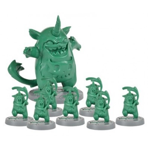 7 figurines en plastique déjà assemblées (1 Boss du Donjon Goro, 6 Vermine Giri)