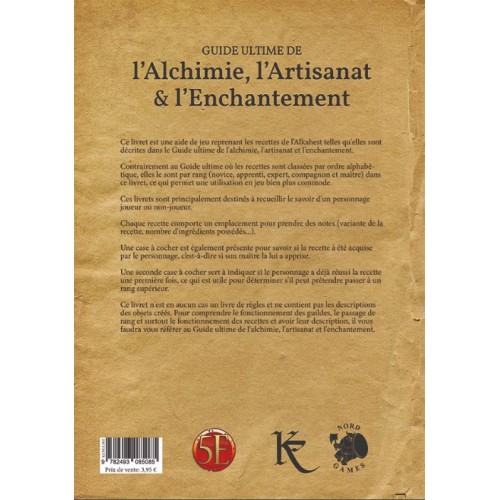 Contrairement au Guide ultime de l’alchimie, l’artisanat et l’enchantement où les recettes sont classées par ordre alphabétique, elles le sont ici par rang (novice, apprenti, expert, compagnon et maître) dans ces livrets, ce qui permet une utilisation en jeu bien plus commode.