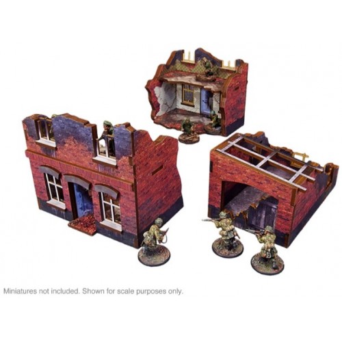 Petite maison de Stalingrad de l'Ostfront de la Seconde Guerre mondiale, prépeinte multicolore (imprimée en UV), est une ruine en deux pièces avec un petit atelier / garage séparé aux intérieurs colorés accessibles.