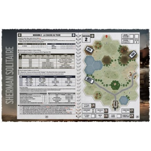 Sherman Solitaire vous place aux commandes de votre char Sherman et de son équipage quelque part en France pendant la Seconde Guerre mondiale. Il vous propose un livre-jeu de 50 pages comprenant 13 missions variées pour relever les défis qui vont se mettre en travers de votre route. Planche de pions incluse pour vous lancer immédiatement dans la bataille !