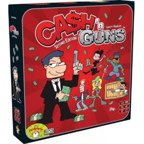Cash’n’Guns 2ème édition est un jeu d’ambiance, de bluff et de gangsters de Ludovic Maublanc pour 4 à 8 joueurs.