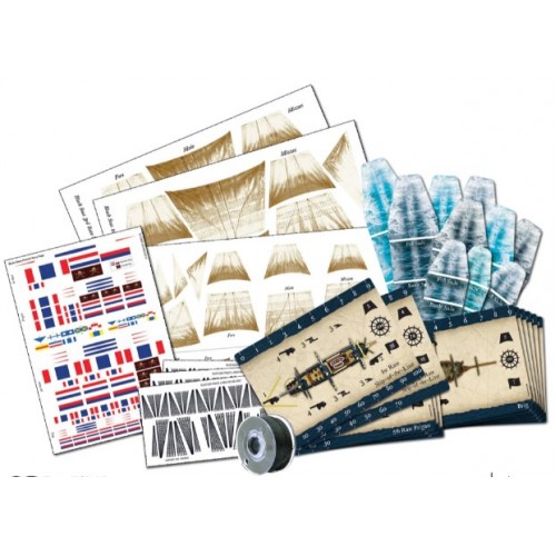 Drapeaux, voiles et feuilles de gréement de la Marine française + bobine pour le gréement