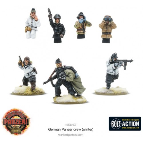 Au cours des combats brutaux sur le front de l'Est, les équipages de chars allemands se sont retrouvés confrontés au défi de s'opposer aux blindés soviétiques dans des conditions hivernales rigoureuses. Ces soldats sont bien protégés du froid dans leurs épais vêtements d'hiver, et avec quatre figurines partielles montées et trois figurines démontées (dont un commandant aidant désespérément son Kamerad blessé à se mettre en sécurité), cet ensemble est un excellent moyen d'assurer votre Achtung Panzer ! ou les chars Bolt Action ont l'air bien Ostfront !