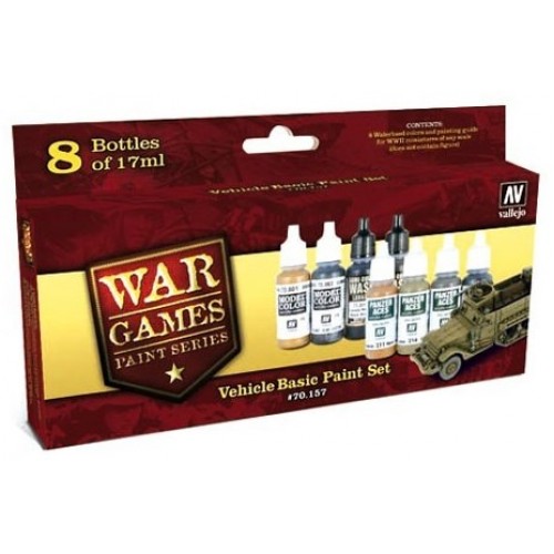 Ce kit contient 8 pots de 17ml : 70304 Track Primer 70306 Dark Rubber 70311 New Wood 70314 Canvas 70801 Brass 70863 Gunmetal grey 73200 Sepia Wash 73201 Black Shade Wash