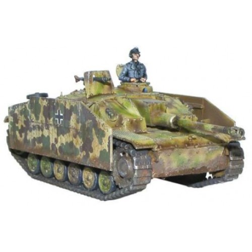 Le StuG III avait une bonne armure frontale, son profil bas le rendant idéal pour effectuer des embuscades, présentant une mauvaise cible pour les tirs de retour. Il est armé d'un canon de 75 mm efficace et puissant et embarque une MG42 pour la défense rapprochée.