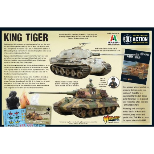 Le Königstiger (officiellement nommé Panzerkampfwagen Tiger Ausf. B ou Sd.kfz 182) plus connu sous le nom de « King Tiger » ou « Royal Tiger » par les troupes alliées, était un développement du redoutable char Tiger I. Son introduction aux hostilités en 1944 a causé d'importants problèmes aux Alliés, mais finalement, il a vu l'action trop tard et en moins grand nombre pour avoir un impact décisif sur la guerre.