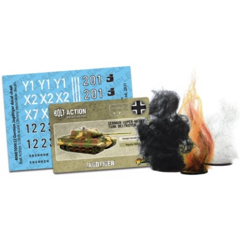 Seuls deux schwere Panzerjäger-Abteilung allemands (bataillons anti-chars lourds) comprenaient des Jagdtigers, le 512e Heavy Panzerjäger Battalion et le 653e Heavy Panzerjäger Battalion. Une compagnie du 512e était commandée par le célèbre Panzer Ace, Otto Carius, crédité de la destruction de plus de 150 chars et d'un nombre similaire de canons antichars - il gagna la croix de chevalier de la croix de fer avec des feuilles de chêne. La feuille de transfert incluse comprend les décalcomanies de Carius.