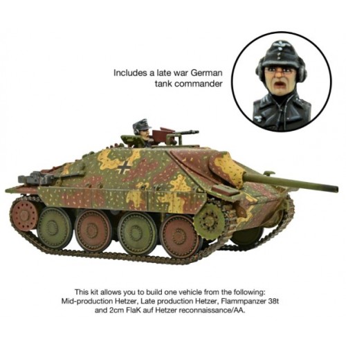 Ce coffret (kit en plastique) vous permet de construire l'un des trois types de véhicules : un Hetzer de production moyenne/tardive, un Flammpanzer 38(t) et un véhicule de reconnaissance/AA FlaK auf Hetzer de 2 cm.