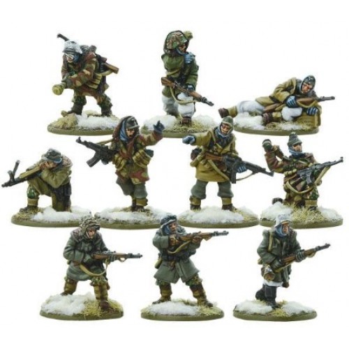 Ces figurines sont représentées portant un mélange de parkas M40 doublées de laine et de parkas M43 doublées de fourrure délivrées aux troupes de la Waffen-SS - ces dernières étant disponibles en camouflage gris, beige ou italien.