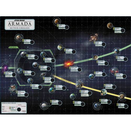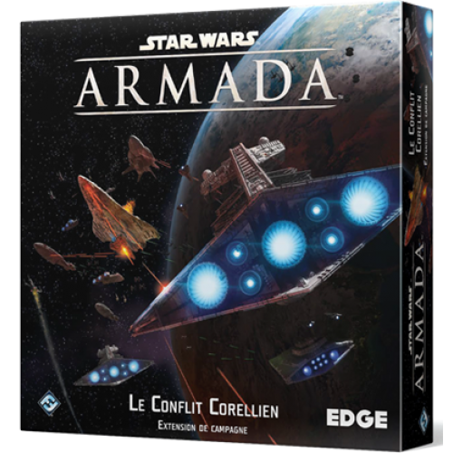 Participez à cette guerre ouverte avec vos amis pour décider du sort du secteur Corellien ! S'adressant à un maximum de 6 joueurs, Le Conflit Corellien est une campagne épique pour Star Wars : Armada mettant en scène une série de batailles spatiales. Rangez-vous du côté de l'Empire Galactique ou de l'Alliance Rebelle, puis choisissez votre commandant et créez votre flotte (400 points par joueur). La victoire dépendra des mondes cruciaux que vous parviendrez à contrôler tout en écrasant vos ennemis ! Cette extension présente 12 objectifs inédits offrant de nouveaux défis et de nouvelles options de victoire. Vous y trouverez également 16 nouvelles cartes d'escadron qui vous permettront d'aligner des pilotes et escadrons légendaires, symboles de la Guerre Civile Galactique !